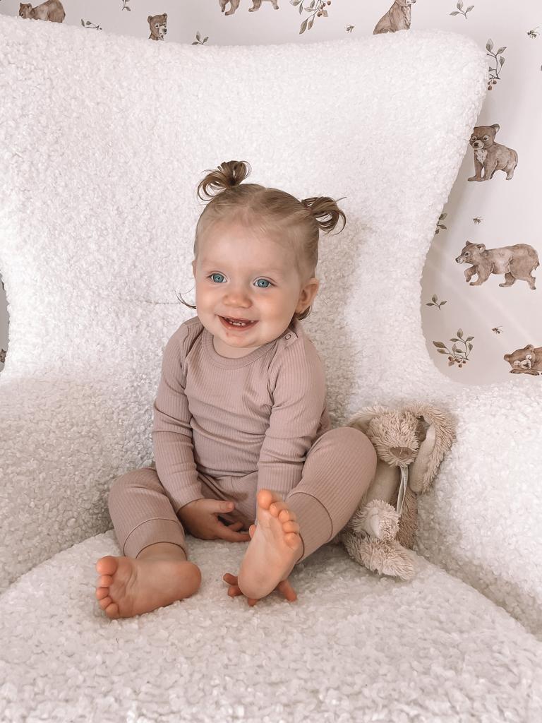Biologisch babykleding: Onze geribbeld set is vervaardigd van 100% biologisch stof. Dit zorgt voor een zacht, ademend en hypoallergeen materiaal dat perfect is voor de gevoelige huid van kinderen.